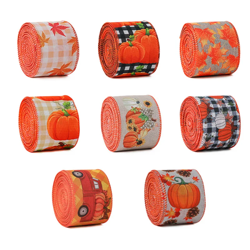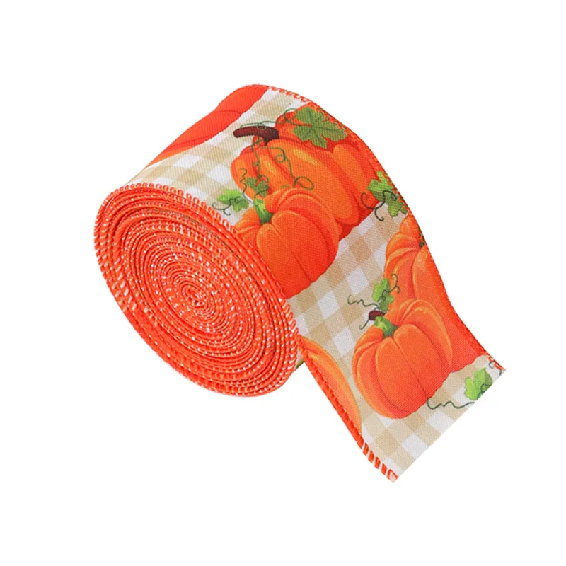 3D Printing Gift Ribbon Yellow Maple Leaf Pumpkin Plaid Edge Decorative Custom Ribbon Thanksgiving Decorative Ribbon factory