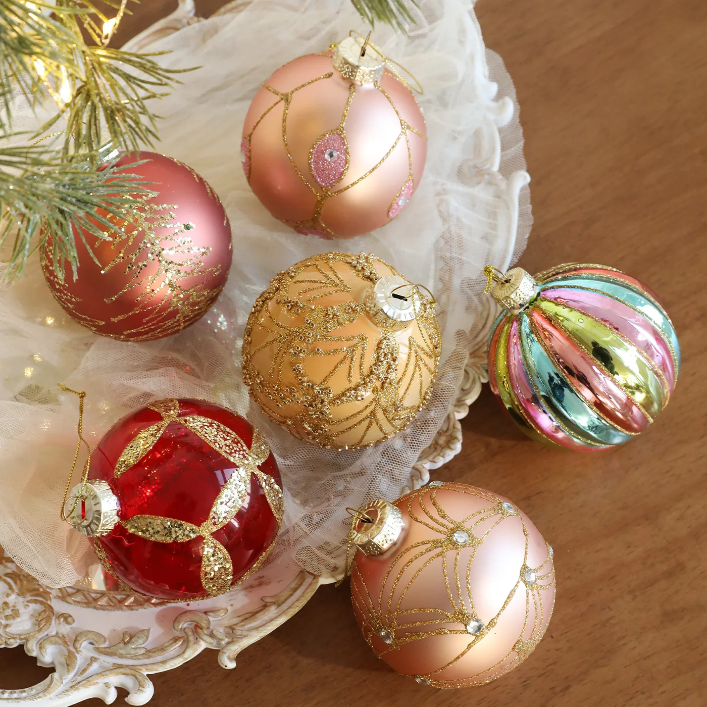16ชิ้น ลูกบอลแฟชั่นขนาด6CM เซ็ตตกแต่ง 4/6/8/10cm ลูกบอลพลาสติกที่ไม่แตกง่าย เซ็ตของตกแต่งต้นคริสต์มาส
