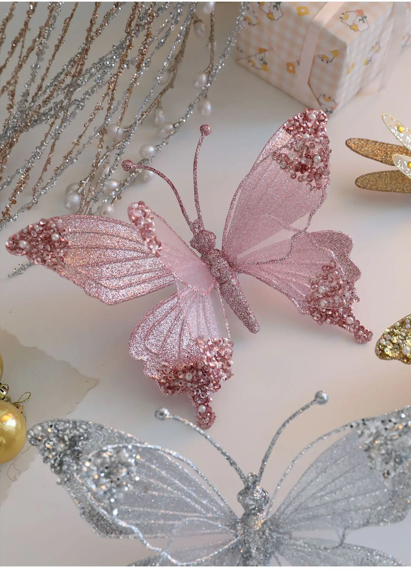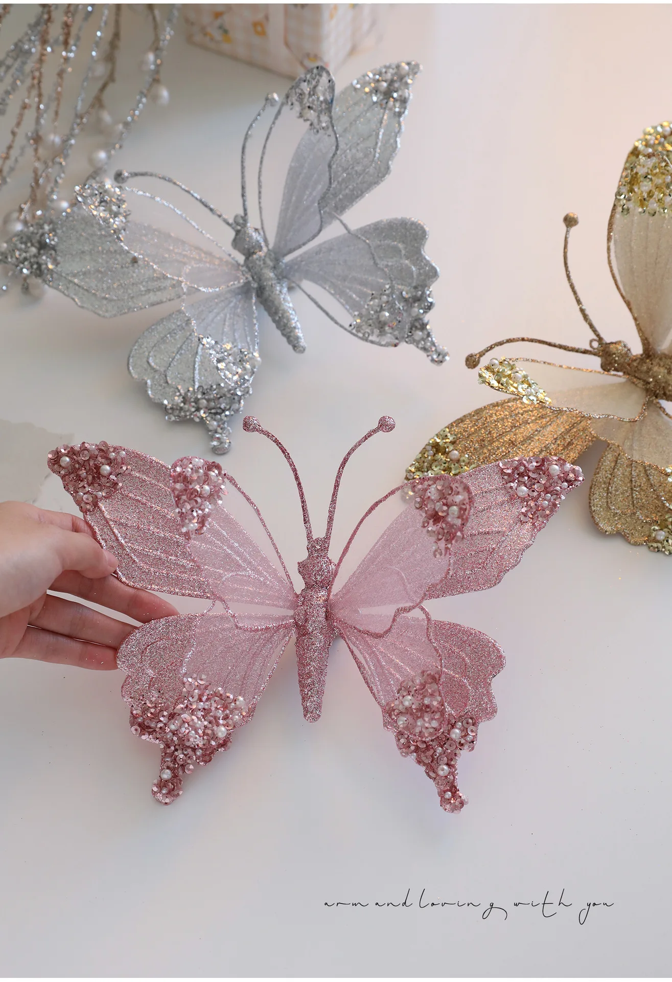 Ağ Mesh Organza Glitter Şeritleri DIY Xmas Ağaç Wreath Şerit Noel Şeritleri ve Börekler Gümüş Tül Noel Şeritleri Sanatlar İçin